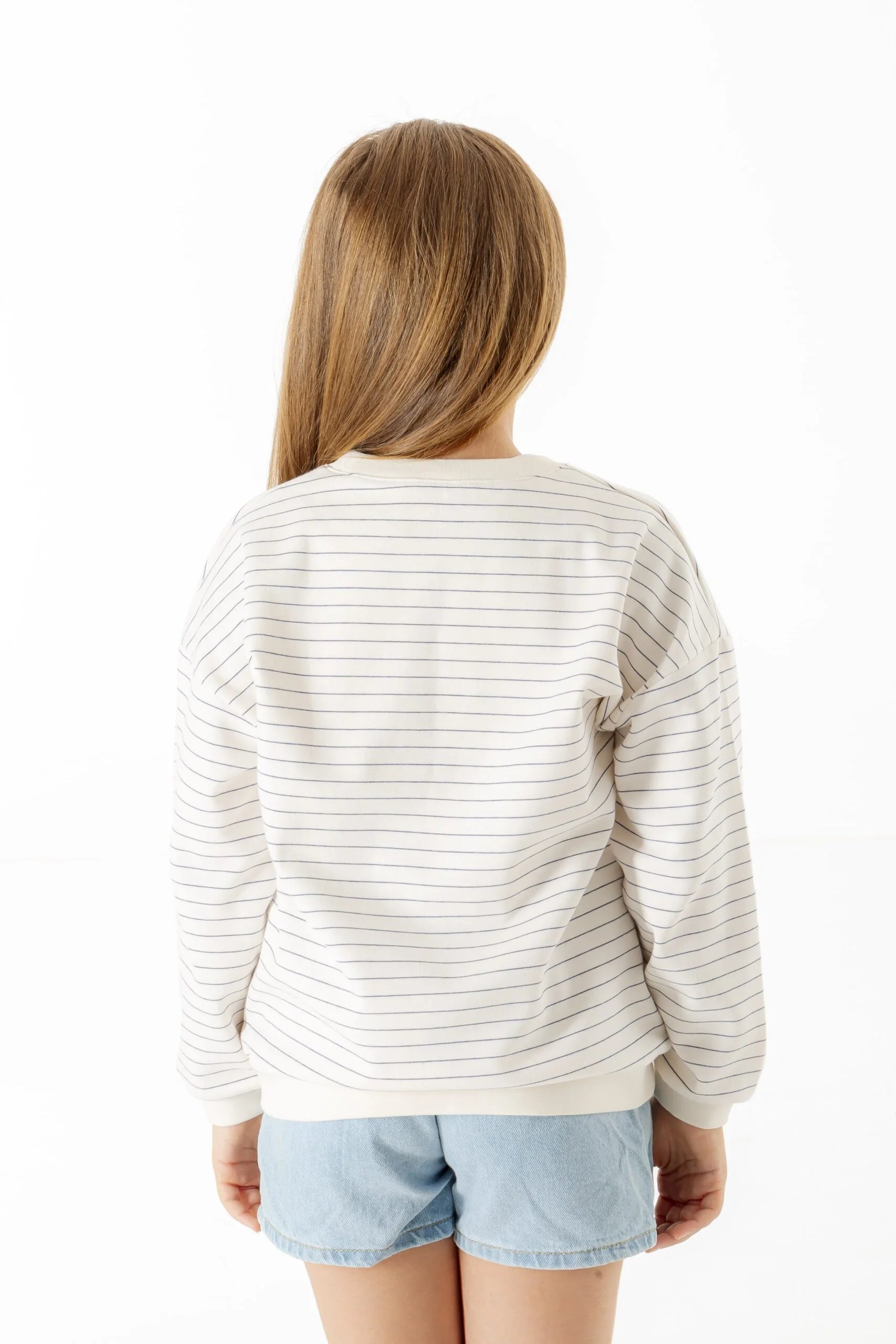 Apple Baskılı Çizgili Sweatshirt
