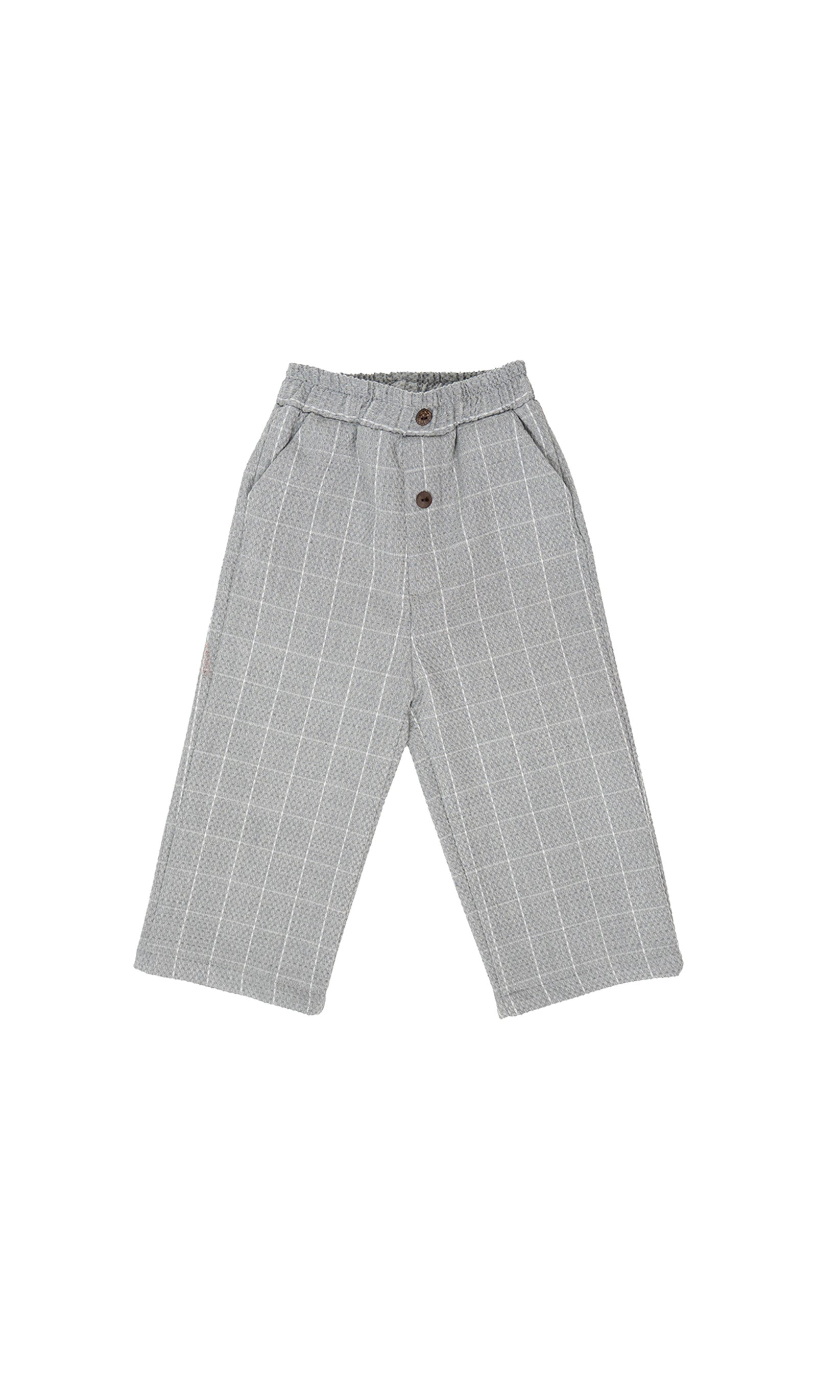 Şıklık ve konforun mükemmel birleşimi! Gri ekose desenli çocuk pantolonu, sade ve modern tasarımıyla her kombine uyum sağlar.
