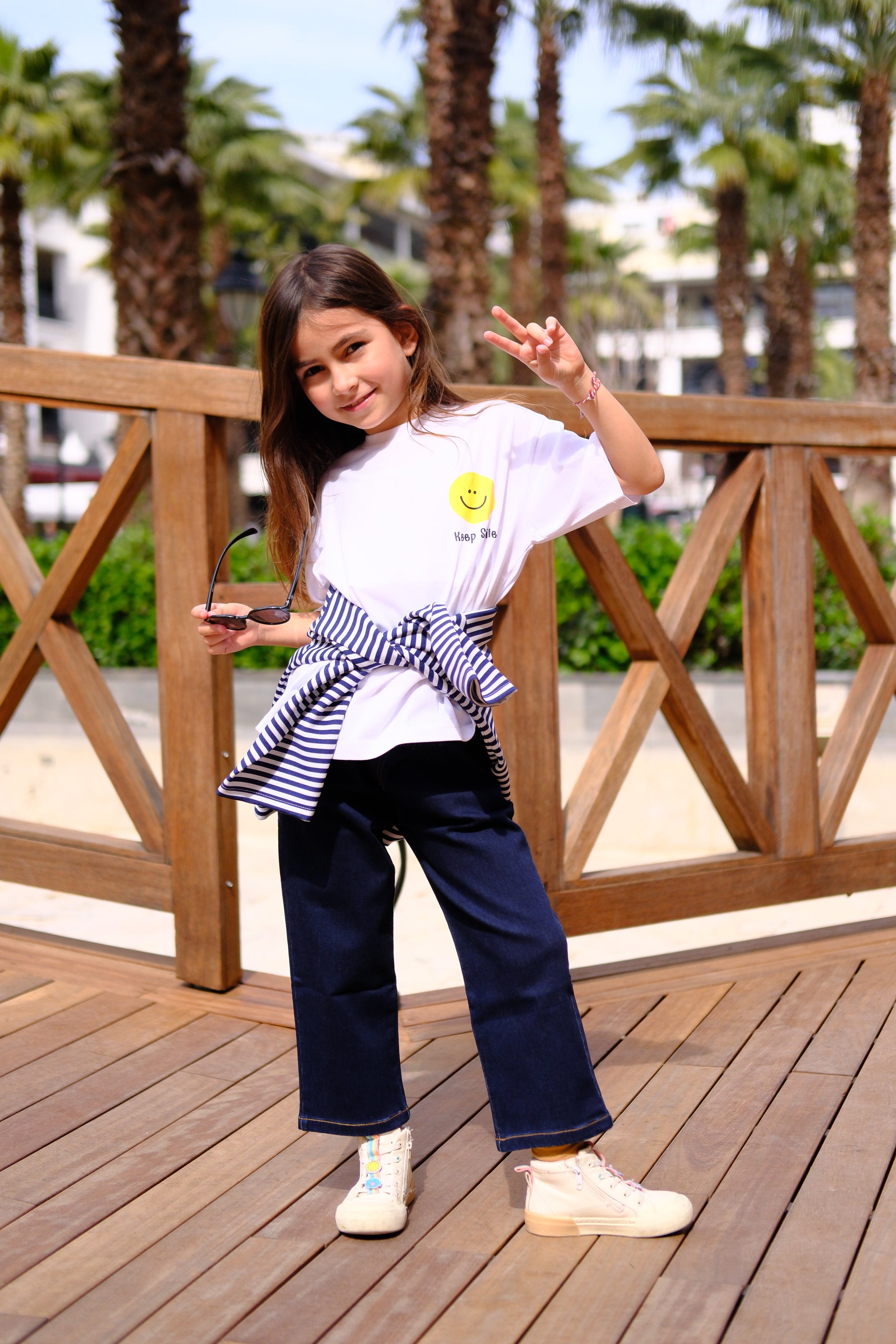 Miniklerin bu yazı rahat ve tarz geçirmeleri için Smile Baskılı Bisiklet Yaka %100 Organik Pamuk T-Shirt Beyaz sizlerle!