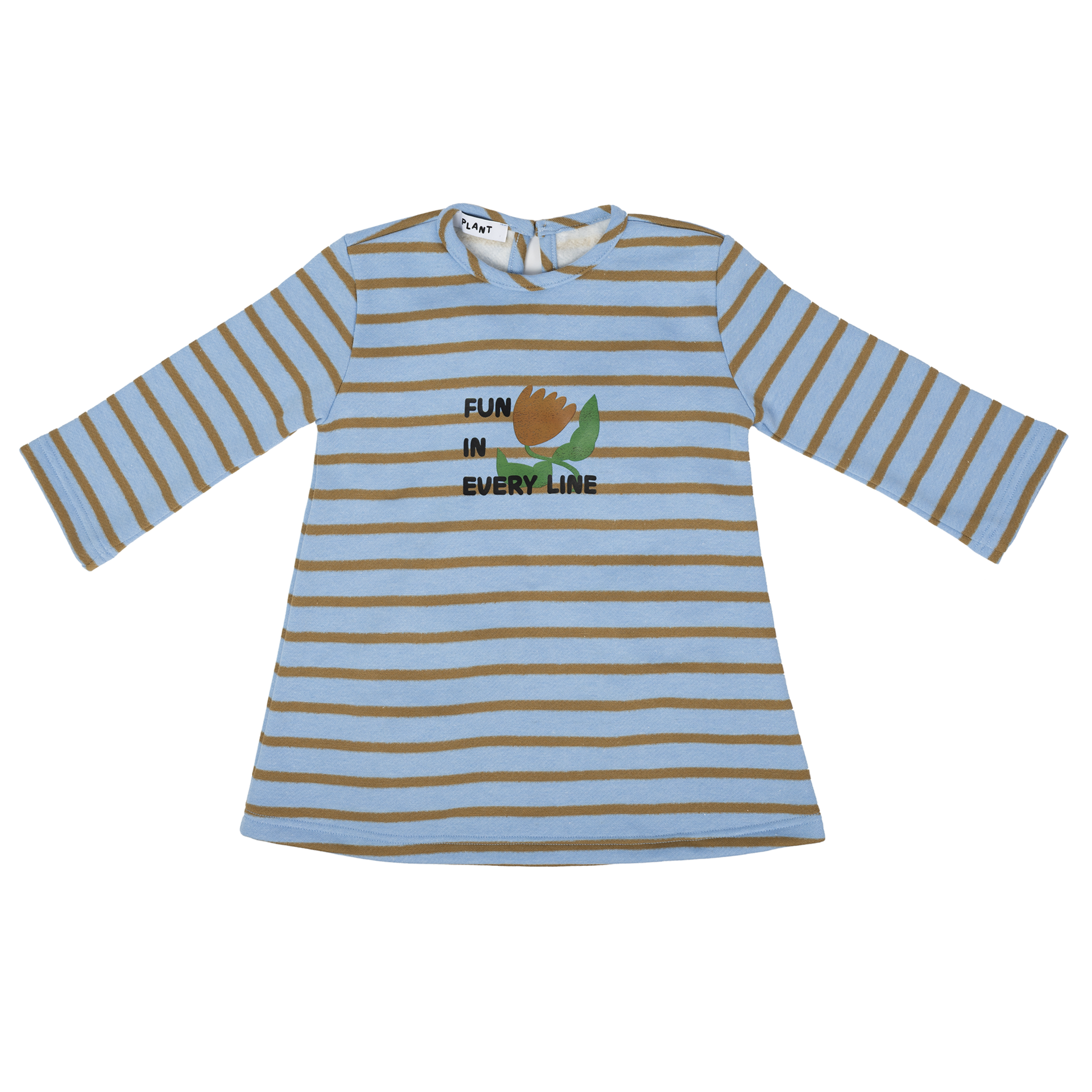 Yumuşak ve esnek dokulu kumaşıyla rahat bir kullanım sunan bu çizgili uzun kollu elbise, üzerinde yer alan ‘Fun in Every Line’ baskısıyla günlük giyimde hem konfor hem de şık bir görünüm sağlar.