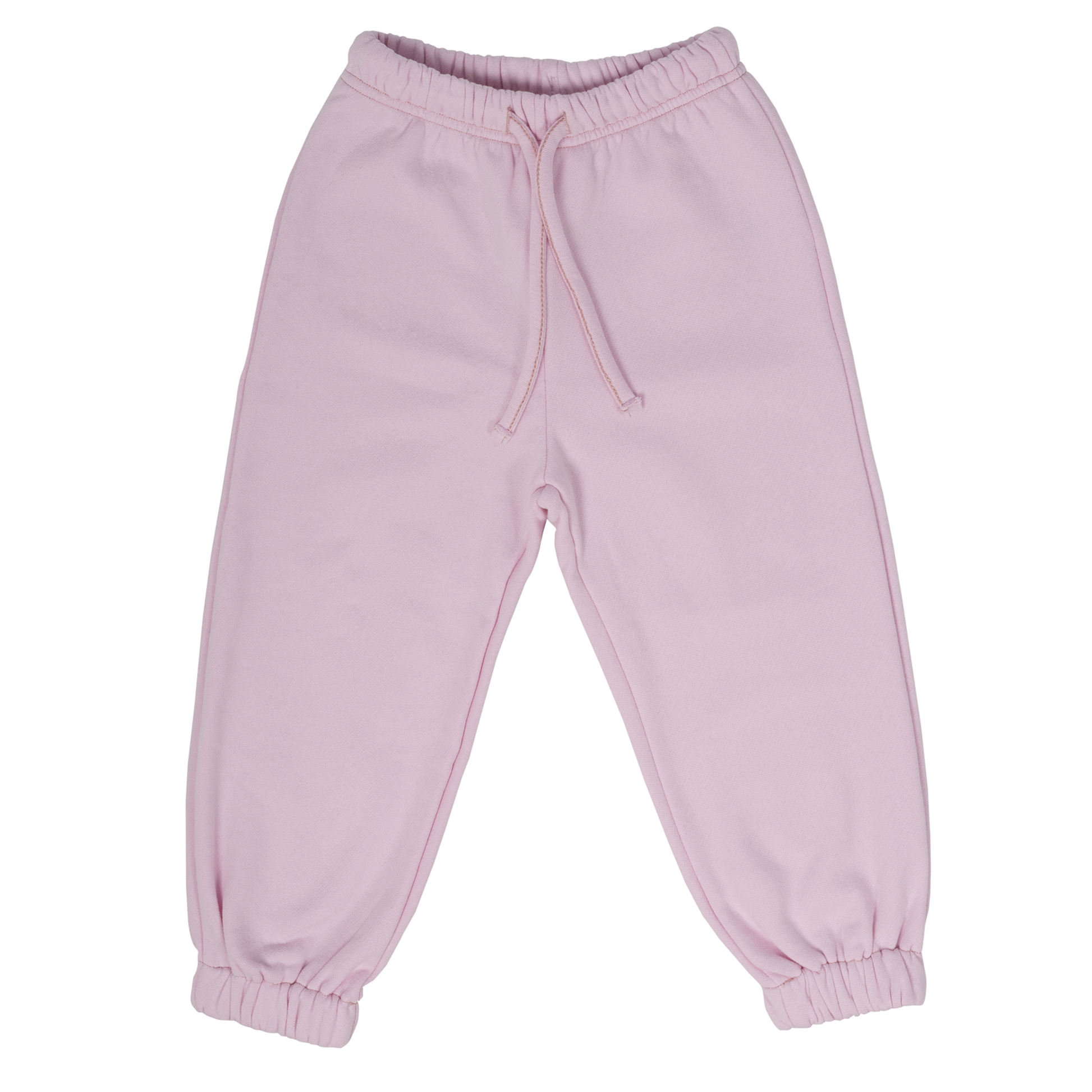 Yumuşak ve esnek pamuk karışımlı kumaşıyla rahat bir kullanım sunan bu pembe eşofman altı, lastikli beli ve kalp şeklindeki nakış detayıyla günlük kombinlere sevimli bir dokunuş ekler.