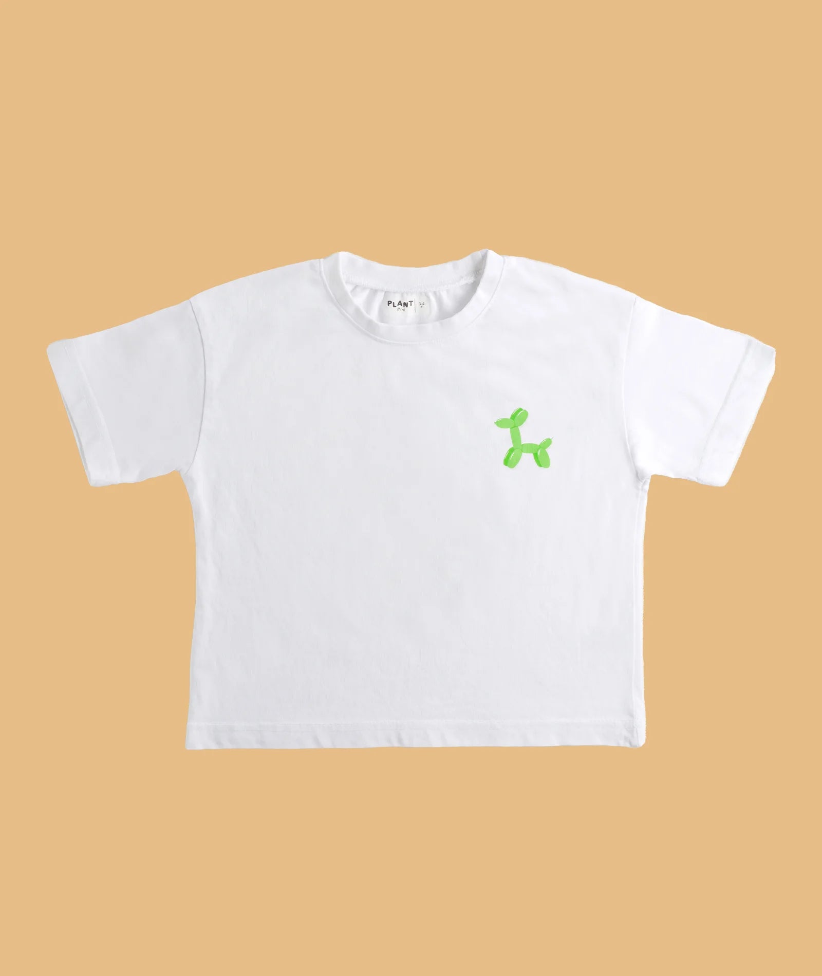 Miniklerin bu yazı rahat ve tarz geçirmeleri için Dog Balloon Baskılı Bisiklet Yaka %100 Organik Pamuk T-Shirt Beyaz sizlerle!