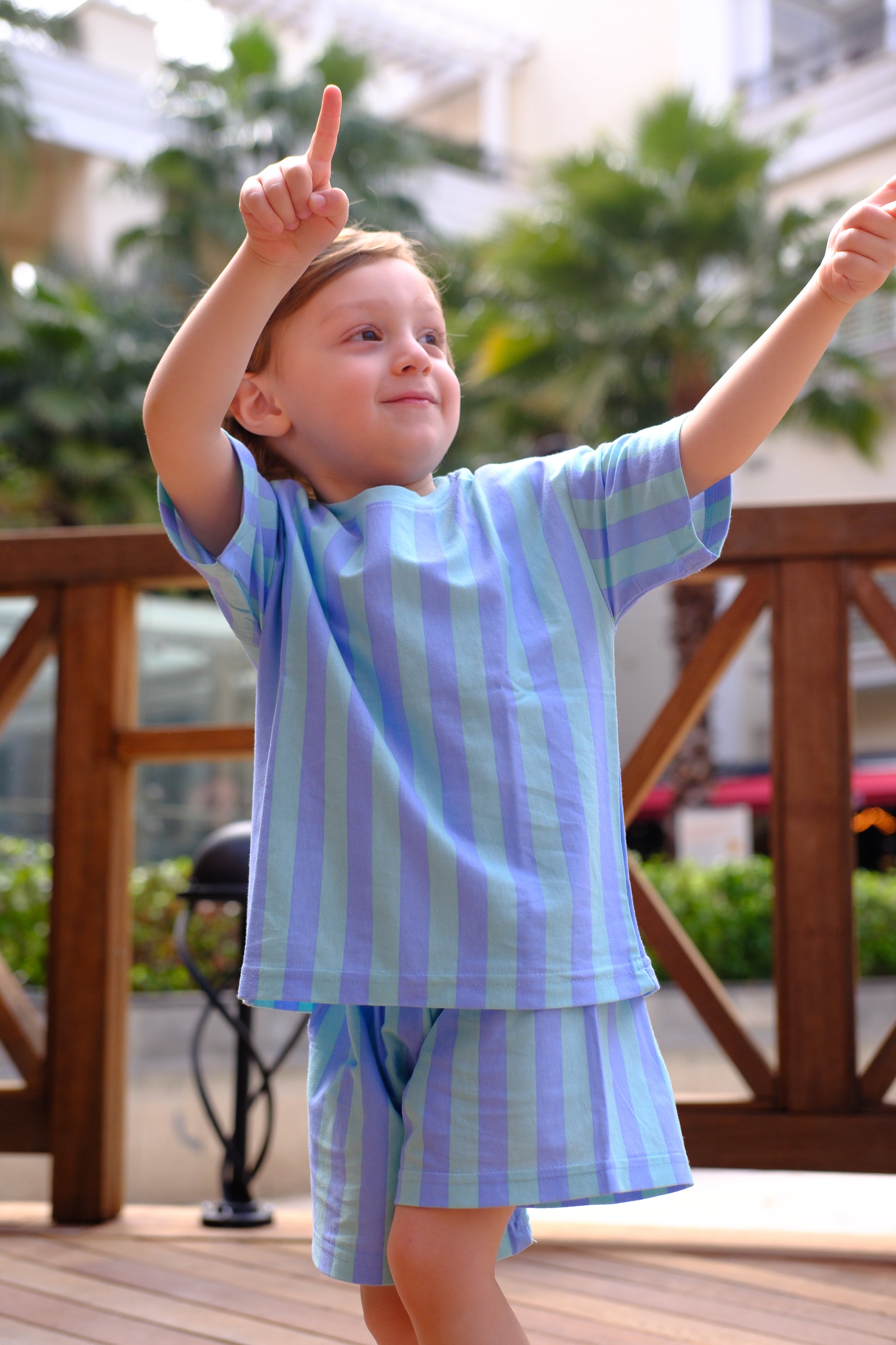 Let your little ones spend this summer in comfort and style with these Forest Green and Blue 100% Cotton, Elastic Waist, Striped Kids Shorts! With our fun, comfortable, and 100% Cotton breathable product collection that will suit your child very well this summer in Plant Mini Kids style, your children will have a lot of fun and move freely!